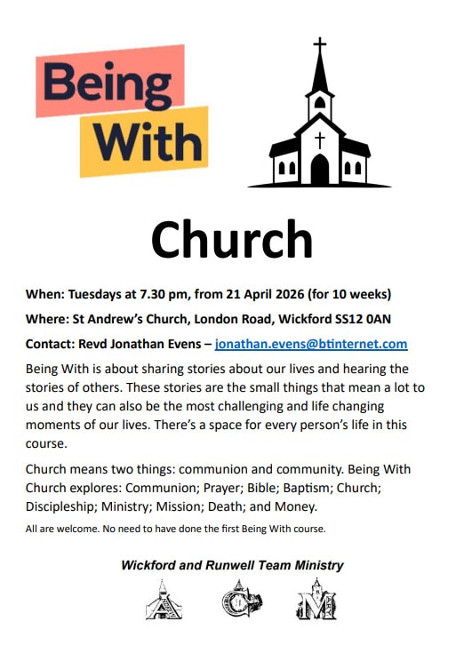 Many of our services are also livestreamed to the Wickford & Runwell C of E Churches Facebook page - https://www.facebook.com/WickfordandRunwellCofE. St Andrew’s and St Catherine’s are open through the day throughout the week, and St Mary’s on request.